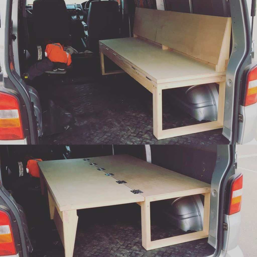 When building the bed, you must decide if you want a bed that is also a table, or if you want the bed to have drawers for storage underneath it. Oh, and you can’t forget about the beds that completely fold up during the day. My advice is, whatever you decide to do, make sure it is comfortable because you will be sleeping there every night and there might not be any other pieces of furniture in your van.